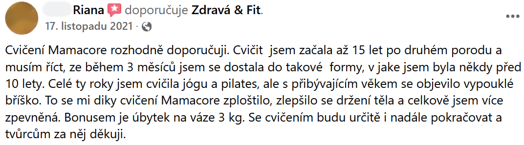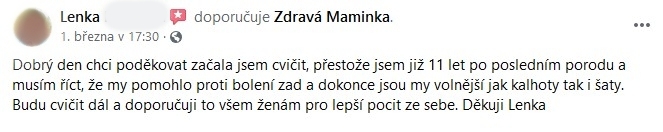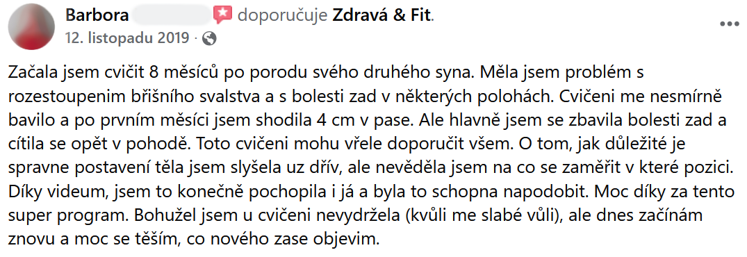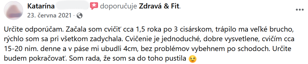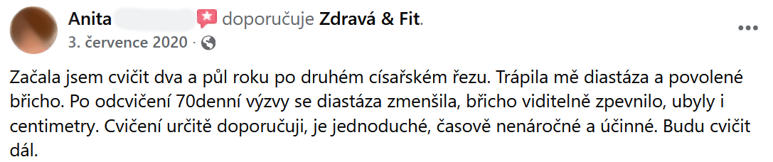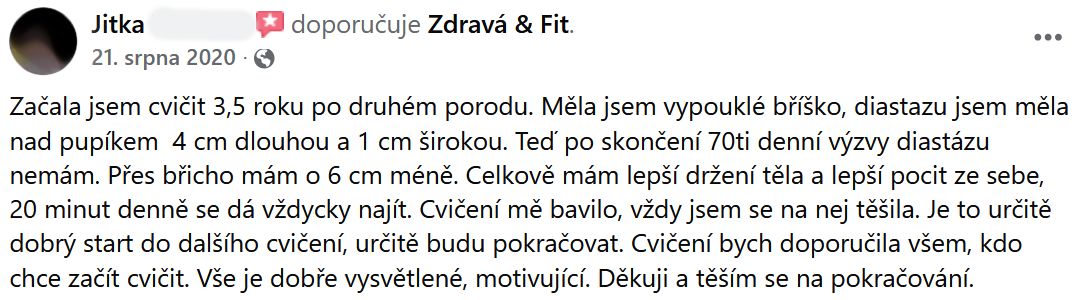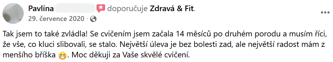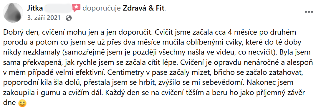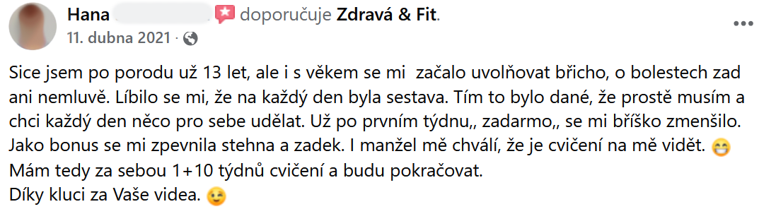 "Břicho se zpevnilo a ubyly i centimetry. Cvičení určitě doporučuji."
