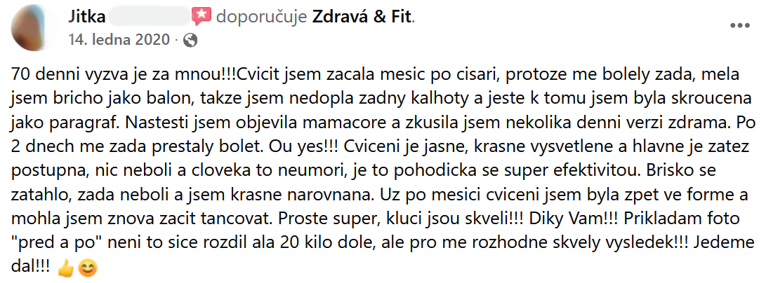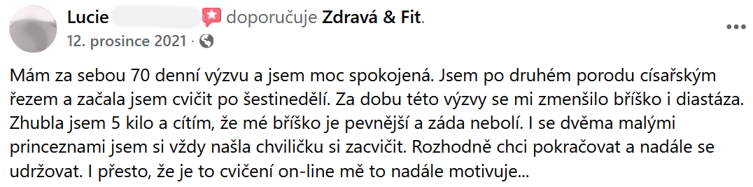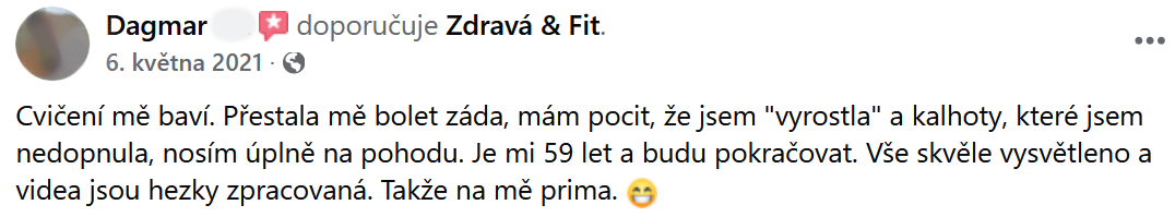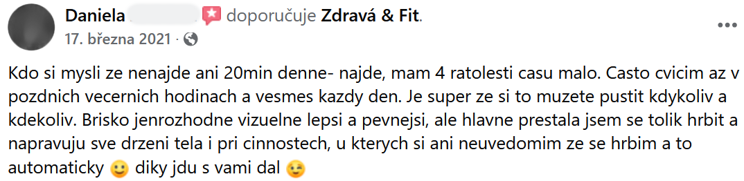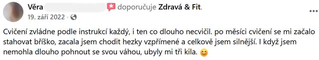 "Mám pevnější břicho, silnější ruce a pevnější stehna. Vřele doporučuji!"